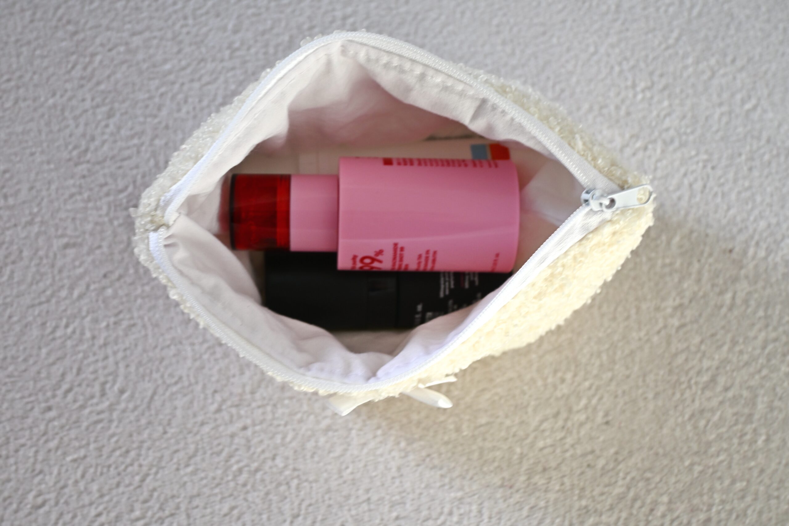 Stylowa i praktyczna kosmetyczka uszyta z wysokiej jakości tkaniny obiciowej Teddy. Miękka, a jednocześnie trwała struktura materiału sprawia, że kosmetyczka jest odporna na codzienne użytkowanie i zachowuje swój kształt.
