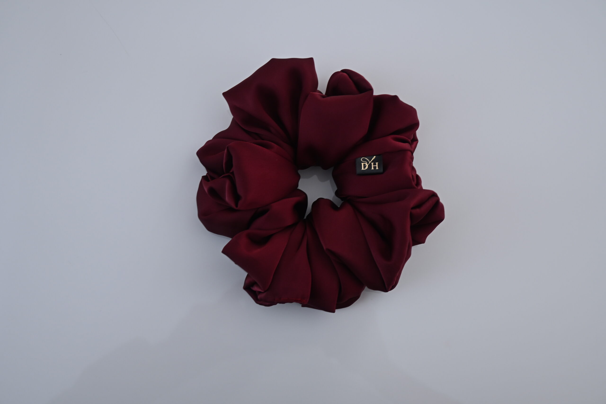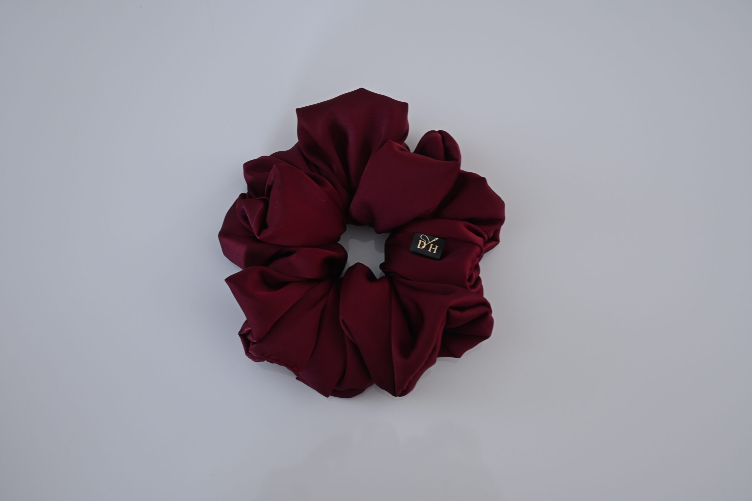 Dodaj swoim fryzurom odrobinę klasy dzięki tej wyjątkowo eleganckiej scrunchie wykonanej z miękkiej, delikatnie połyskującej satyny z dodatkiem jedwabiu. Odcień bordo nadaje jej luksusowego charakteru, a materiał jest łagodny dla włosów — nie wyrywa, nie plącze i minimalizuje powstawanie odgnieceń.