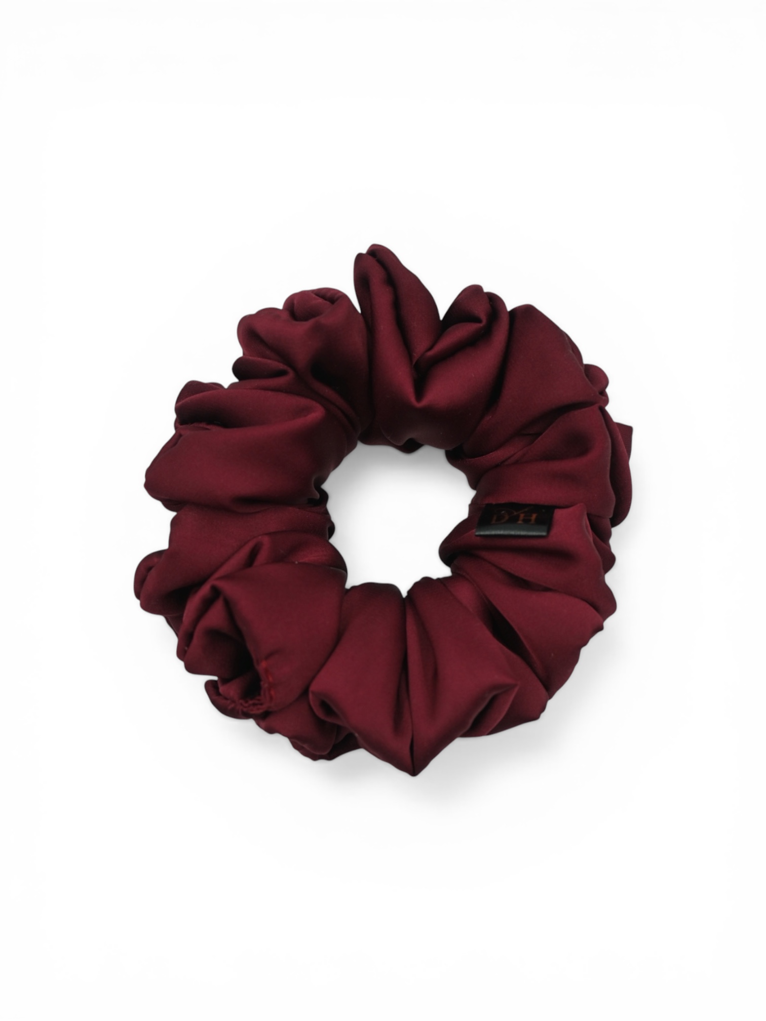 Dodaj swoim fryzurom odrobinę klasy dzięki tej wyjątkowo eleganckiej scrunchie wykonanej z miękkiej, delikatnie połyskującej satyny z dodatkiem jedwabiu. Odcień bordowego nadaje jej luksusowego charakteru, a materiał jest łagodny dla włosów — nie wyrywa, nie plącze i minimalizuje powstawanie odgnieceń.