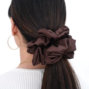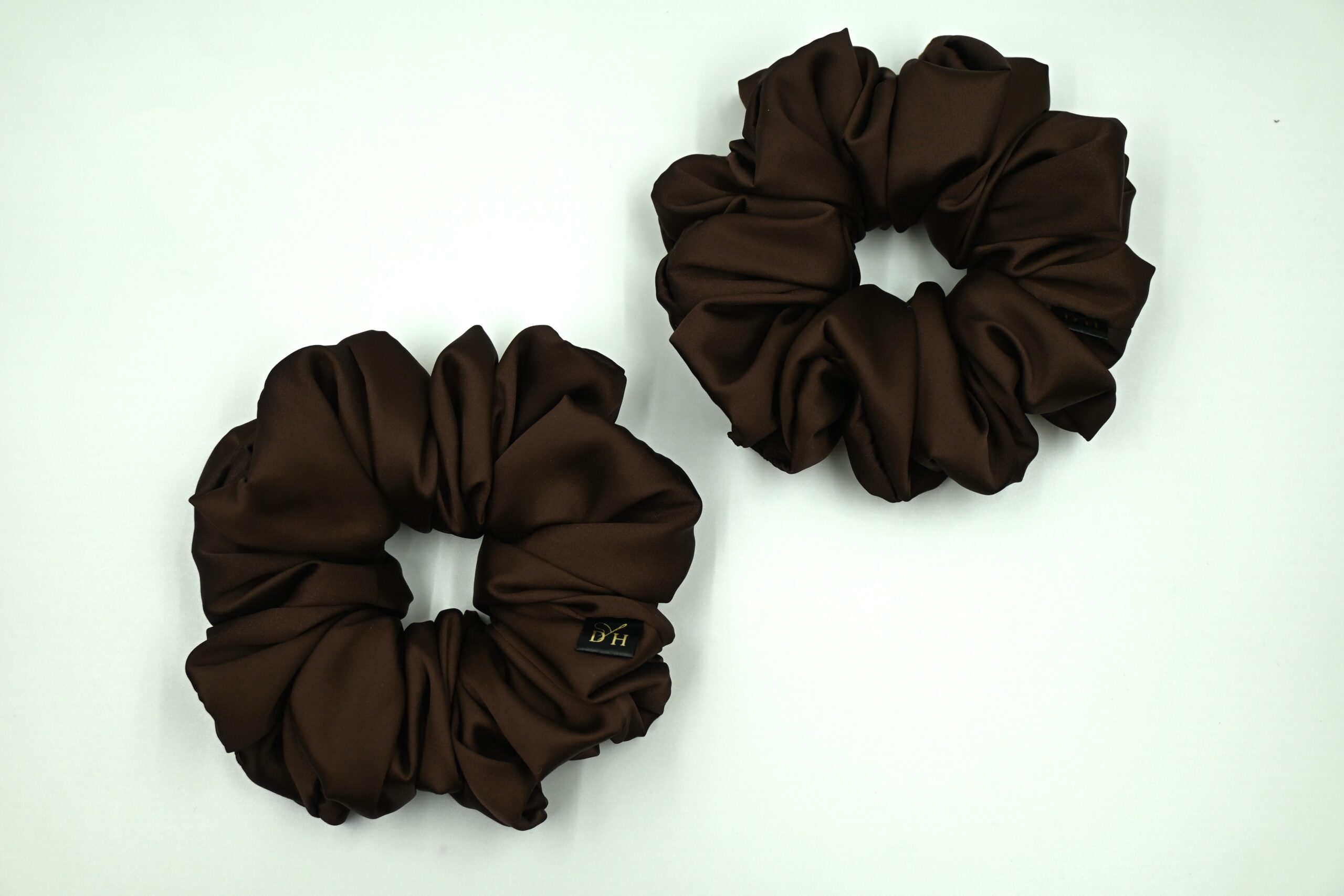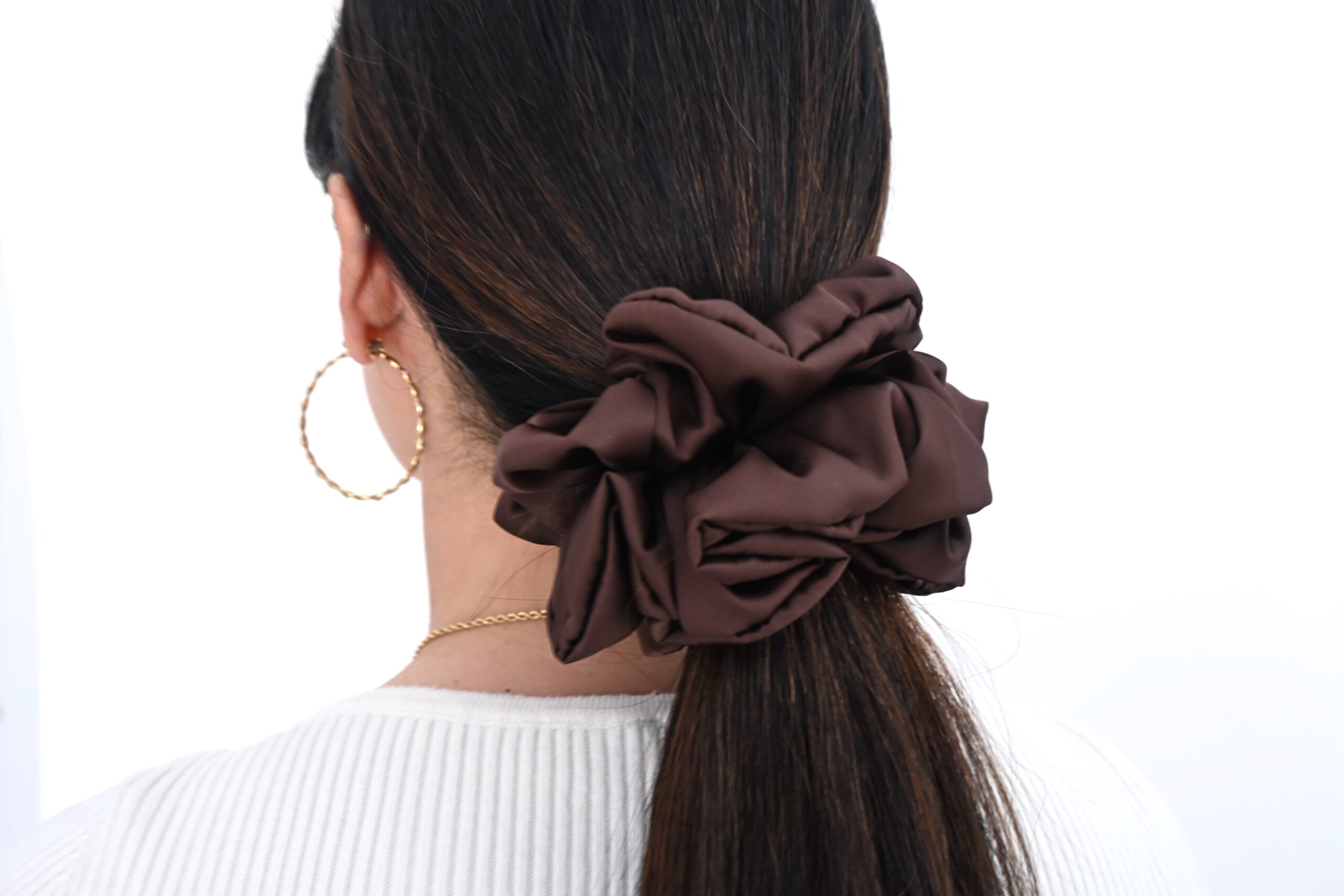 Dodaj swoim fryzurom odrobinę klasy dzięki tej wyjątkowo eleganckiej scrunchie wykonanej z miękkiej, delikatnie połyskującej satyny z dodatkiem jedwabiu. Odcień brązu nadaje jej luksusowego charakteru, a materiał jest łagodny dla włosów — nie wyrywa, nie plącze i minimalizuje powstawanie odgnieceń.