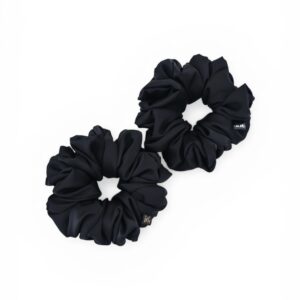 Dodaj swoim fryzurom odrobinę klasy dzięki tej wyjątkowo eleganckiej scrunchie wykonanej z miękkiej, delikatnie połyskującej satyny z dodatkiem jedwabiu. Odcień Czarnego nadaje jej luksusowego charakteru, a materiał jest łagodny dla włosów — nie wyrywa, nie plącze i minimalizuje powstawanie odgnieceń.