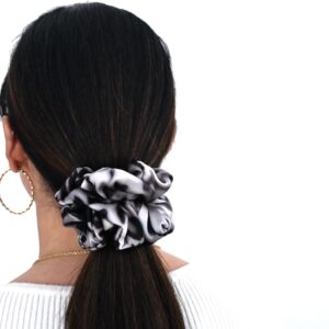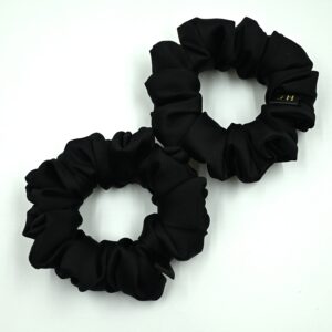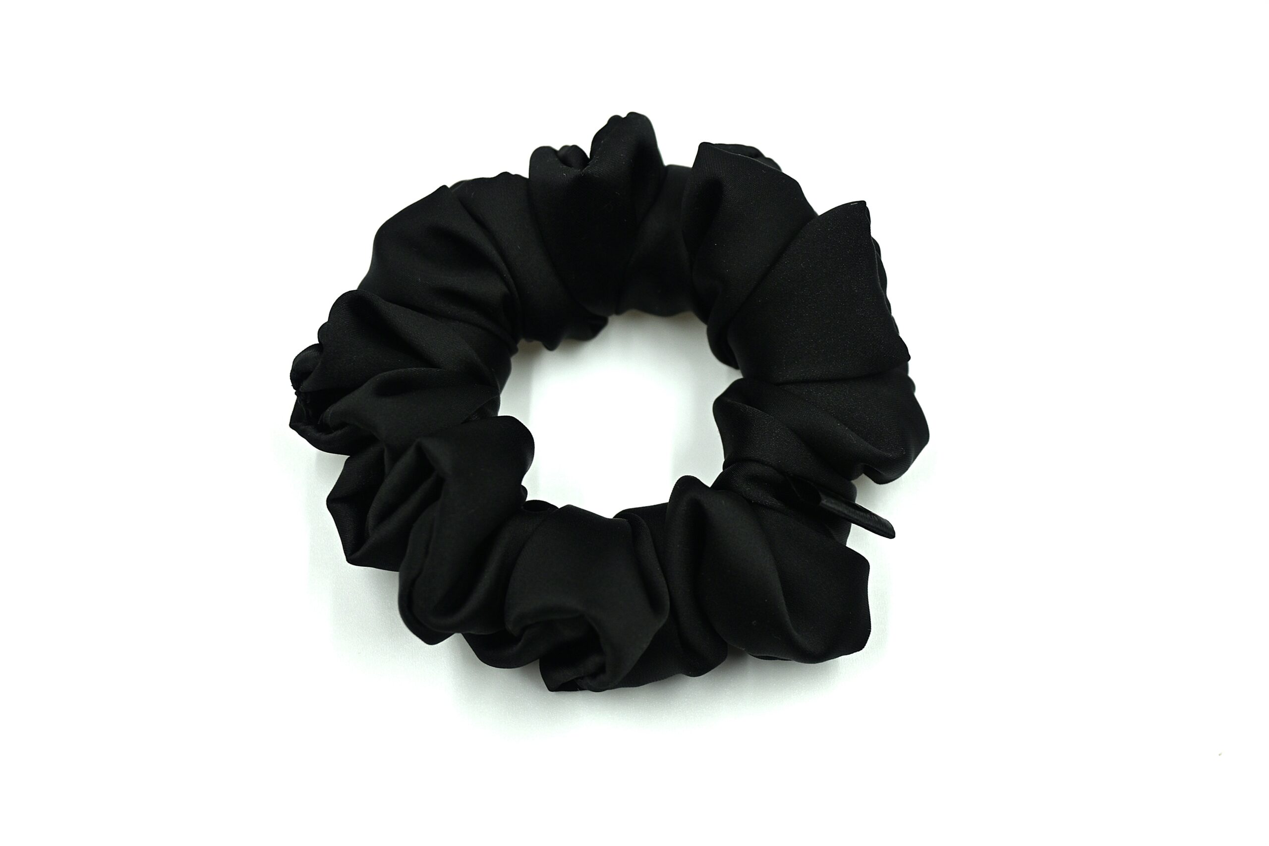 Dodaj swoim fryzurom odrobinę klasy dzięki tej wyjątkowo eleganckiej scrunchie wykonanej z miękkiej, delikatnie połyskującej satyny z dodatkiem jedwabiu. Kolor czarny nadaje jej luksusowego charakteru, a materiał jest łagodny dla włosów — nie wyrywa, nie plącze i minimalizuje powstawanie odgnieceń.