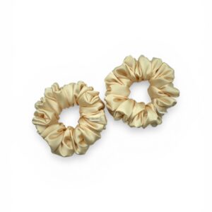 Dodaj swoim fryzurom odrobinę klasy dzięki tej wyjątkowo eleganckiej scrunchie wykonanej z miękkiej, delikatnie połyskującej satyny z dodatkiem jedwabiu. Odcień Jasnego beżu nadaje jej luksusowego charakteru, a materiał jest łagodny dla włosów — nie wyrywa, nie plącze i minimalizuje powstawanie odgnieceń.
